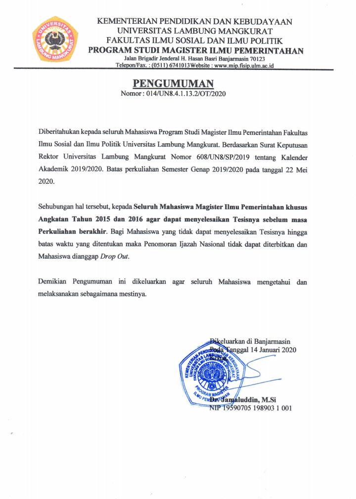 PENGUMUMAN WAJIB SELESAI TESIS SEBELUM 22 MEI 2020