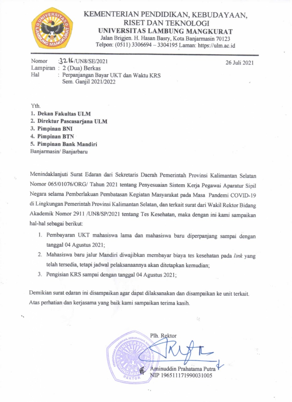 PERPANJANGAN BAYAR UKT DAN KRS GANJIL 2021/2022