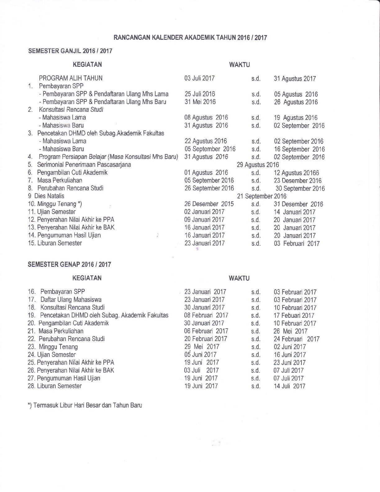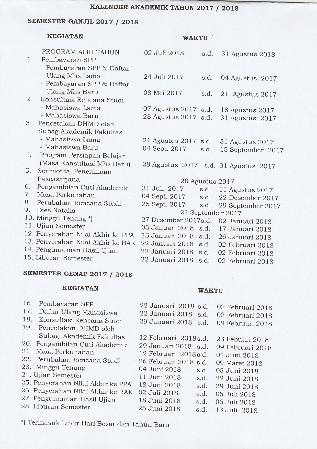 untuk kelancaran proses pembelaran pada Program Magister Ilmu Pemerintahan,mengacu kepada kalender akademik pada setiap tahun nya.
